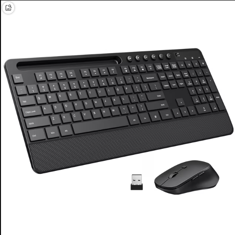 CSD02WKCS7300GBK Wireless Keyboard and Mouse Combo, 2.4GHz Ergonomic Desk 104 Full Size Keyboard and Mouse with Phone Tablet Holder
